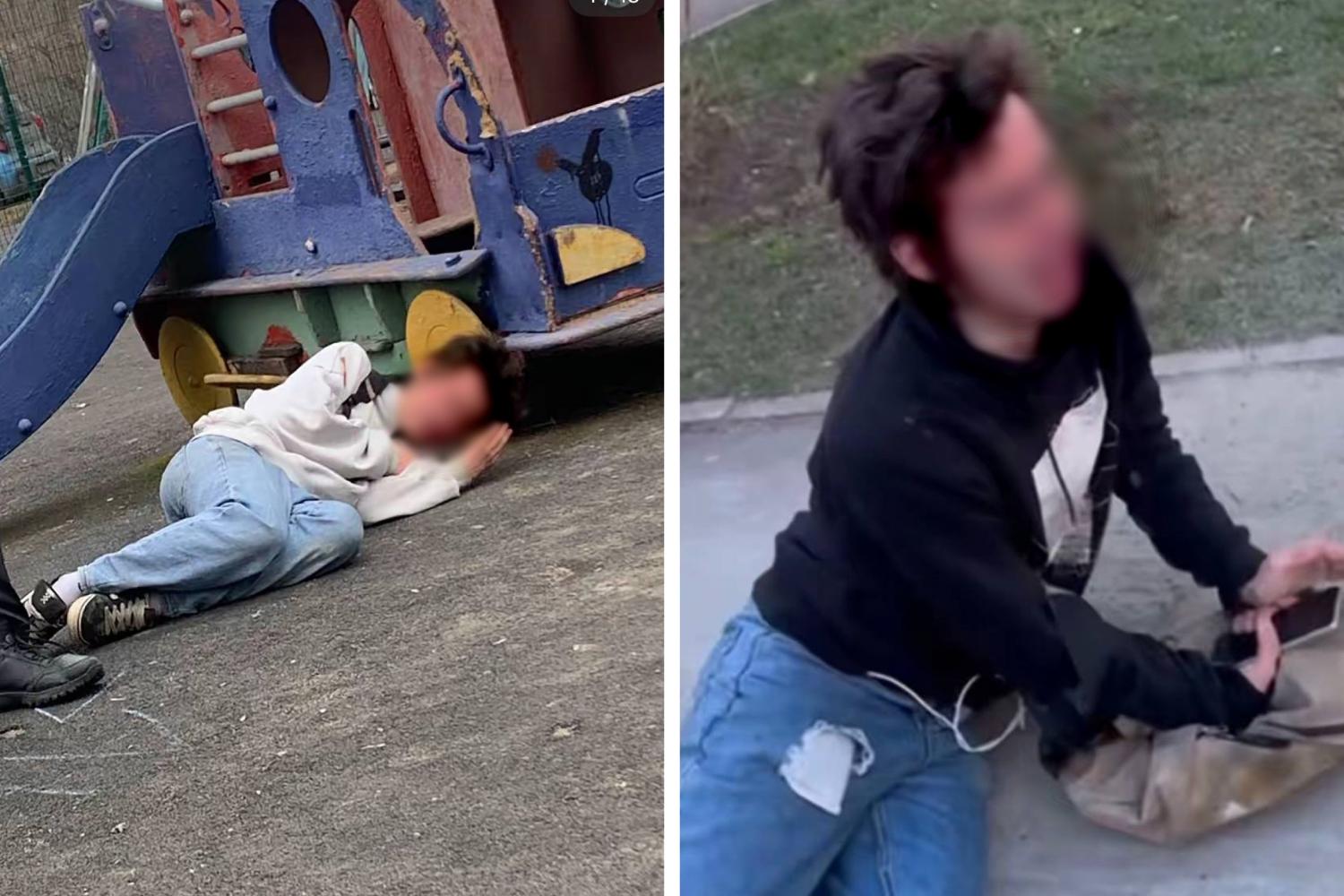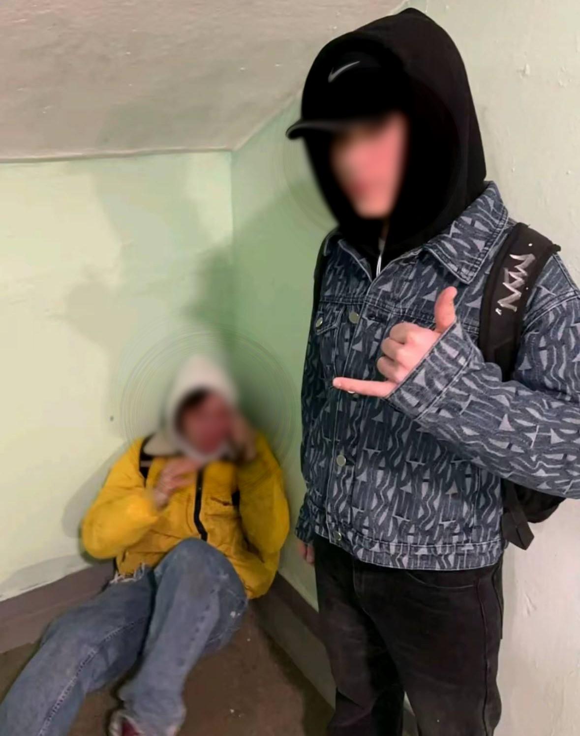 Сейчас подростки спешно удаляют записи из соцсетей, но местные жители успели сохранить доказательства. На кадрах видно, как пострадавший закрывает лицо руками, окруженный примерно 20 человеками. На других видео он лежит на детской площадке, корчась от боли. Есть фотографии, где подростки позируют на его фоне, пока он сидит в углу в слезах.