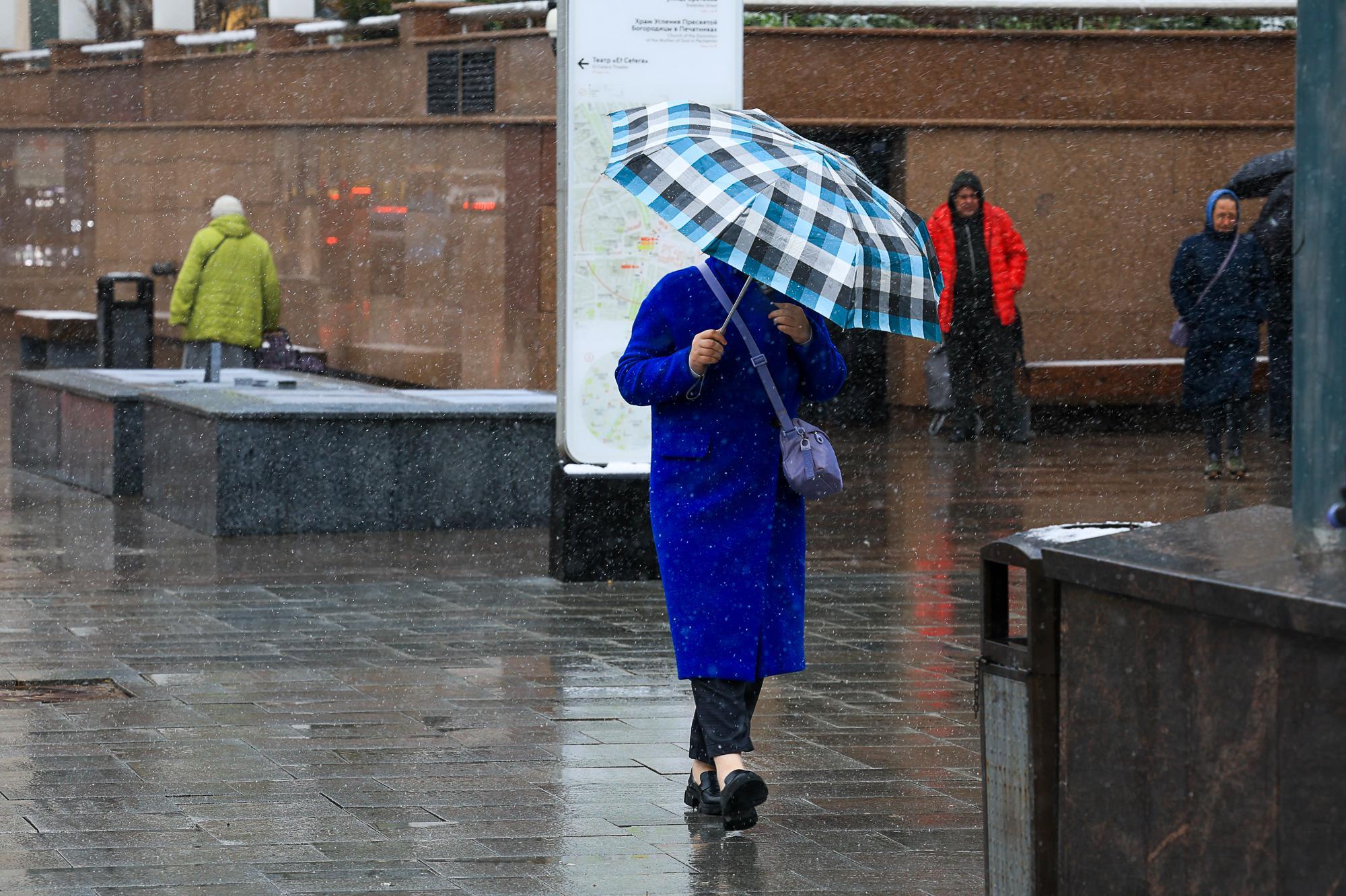 После рекордно теплого марта столичный регион оказался под влиянием североатлантического циклона. В Москве наблюдаются ливни, мокрый снег и штормовые порывы ветра. Такая неустойчивая погода сохранится на протяжении всех выходных.