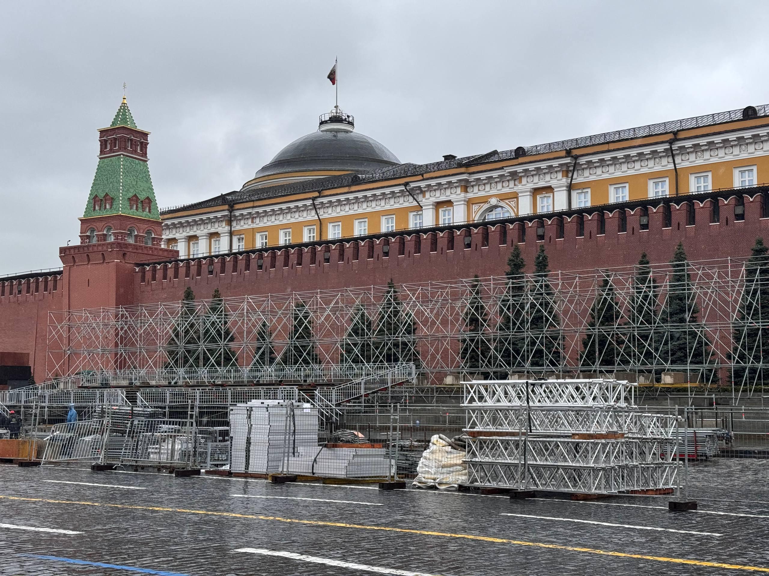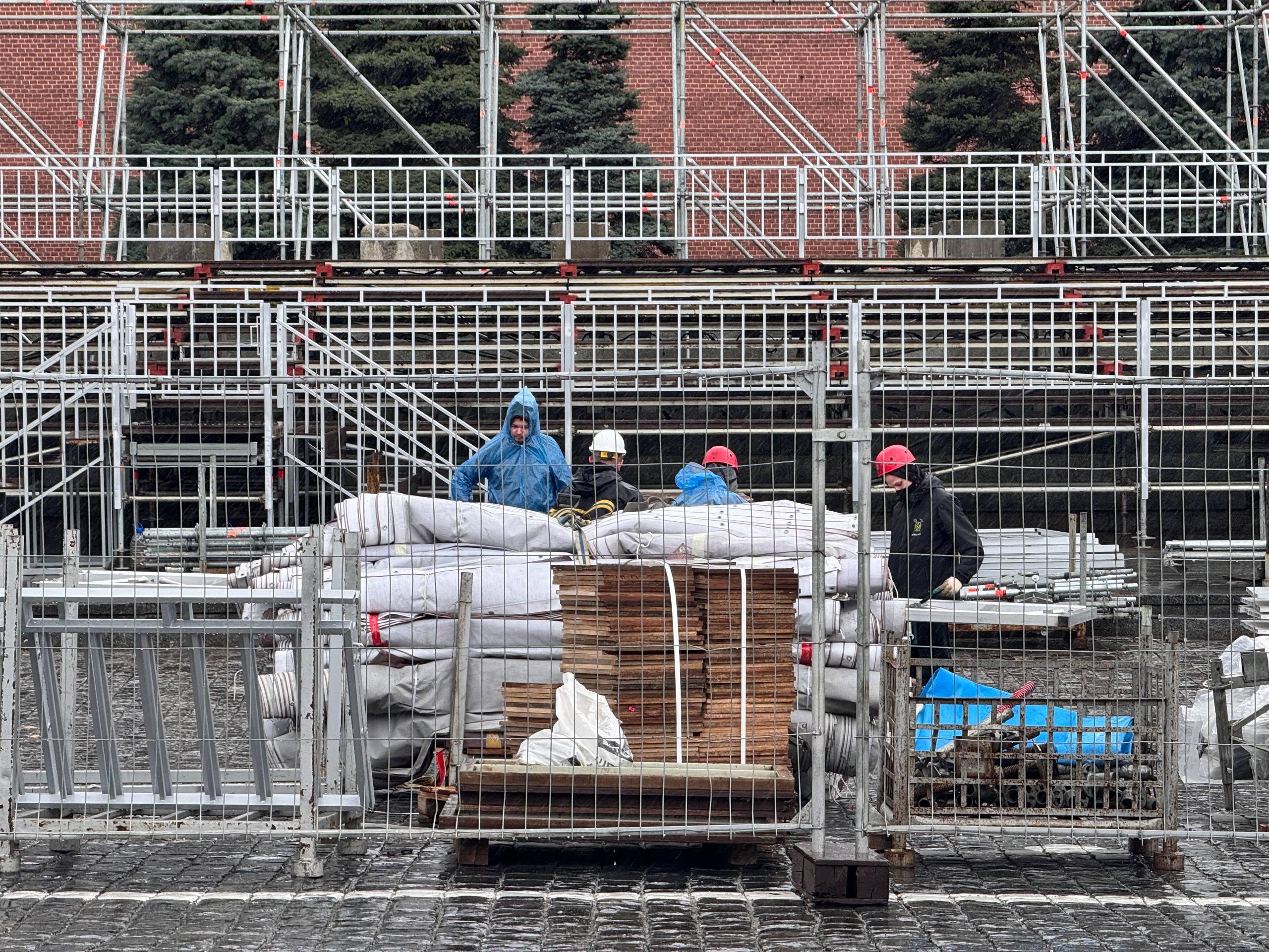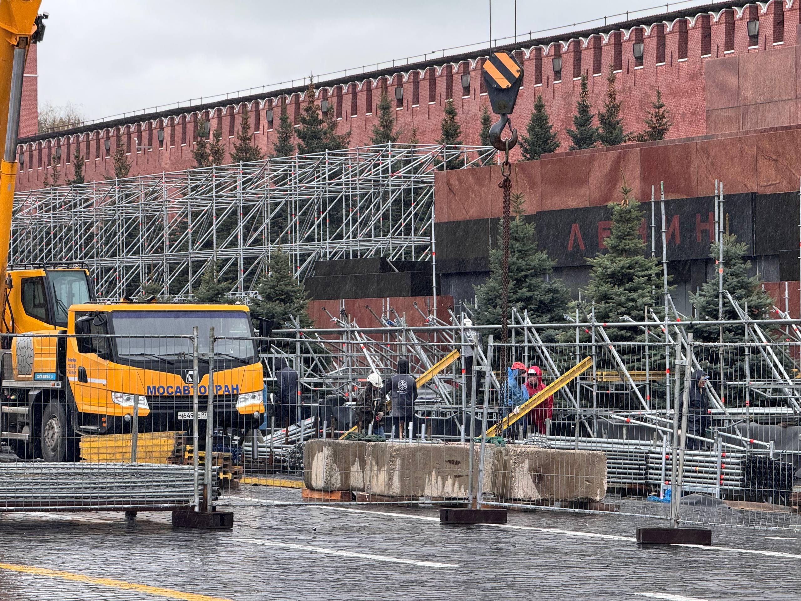 Многометровые конструкции для трибун у Кремлёвской стены