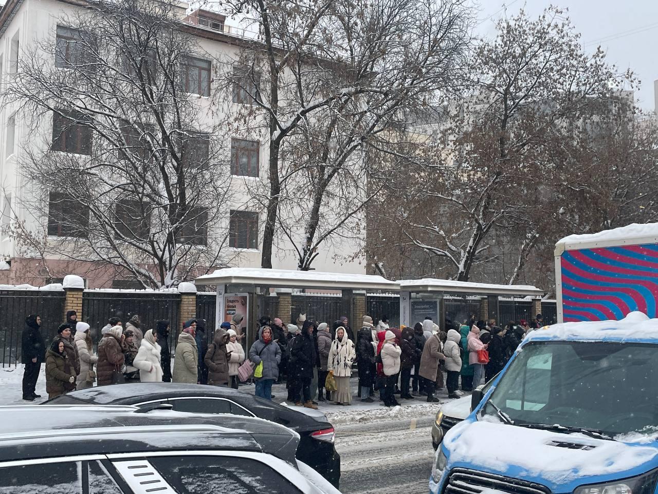 У автобусных остановок скапливаются многочисленные очереди пассажиров.