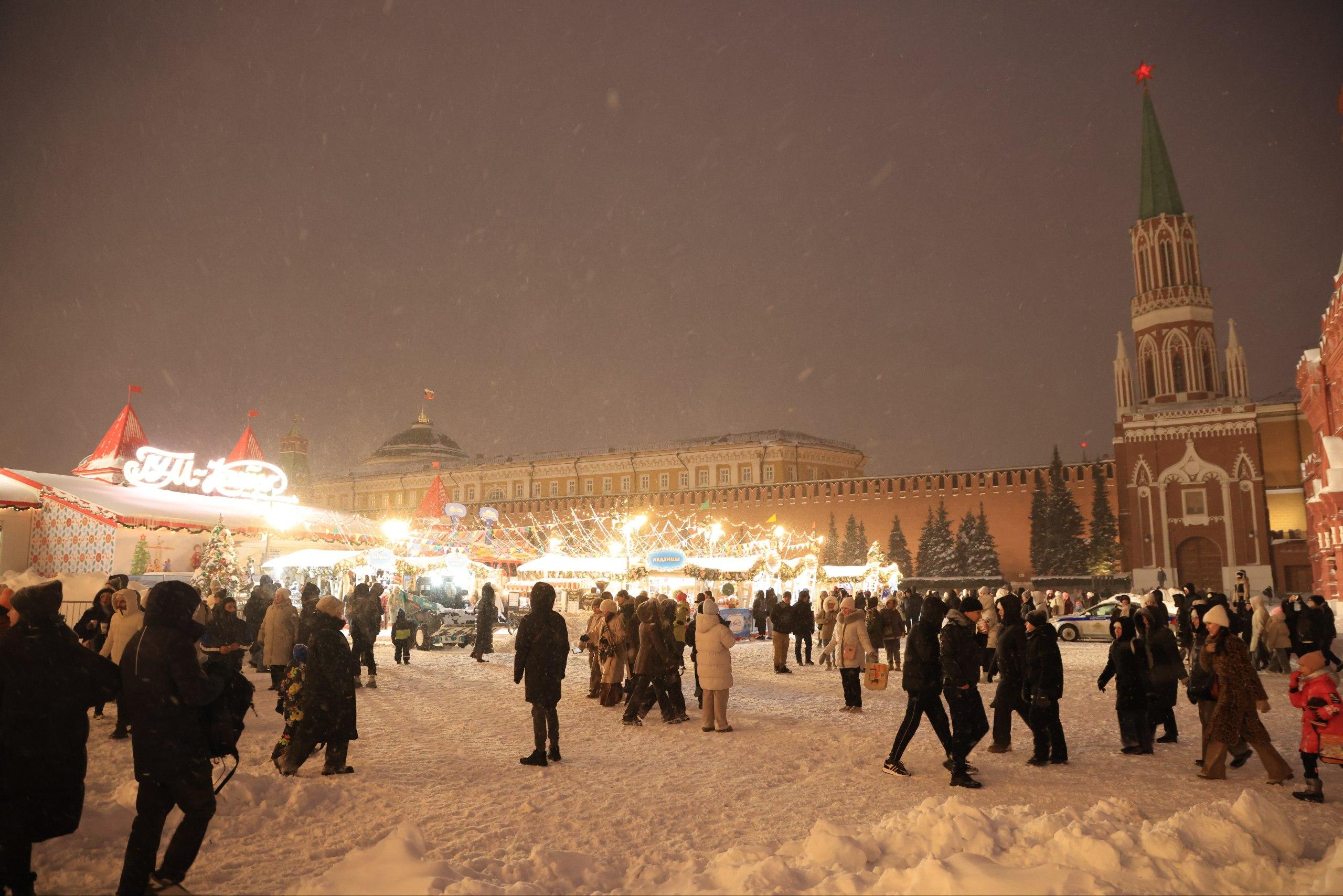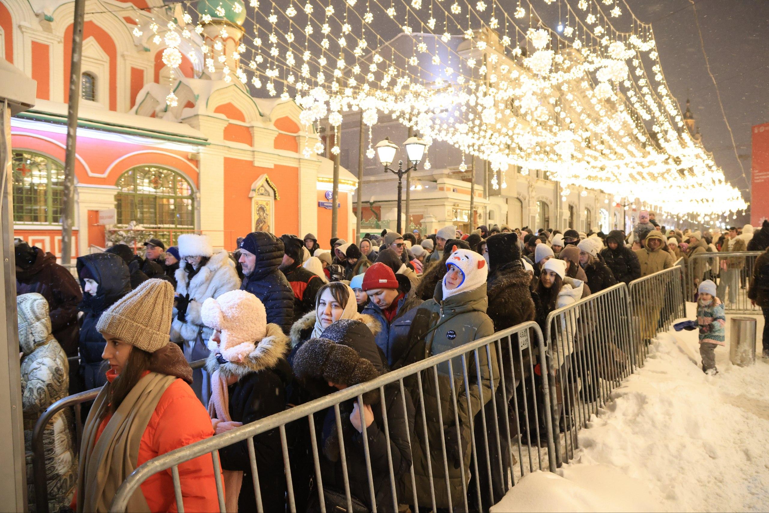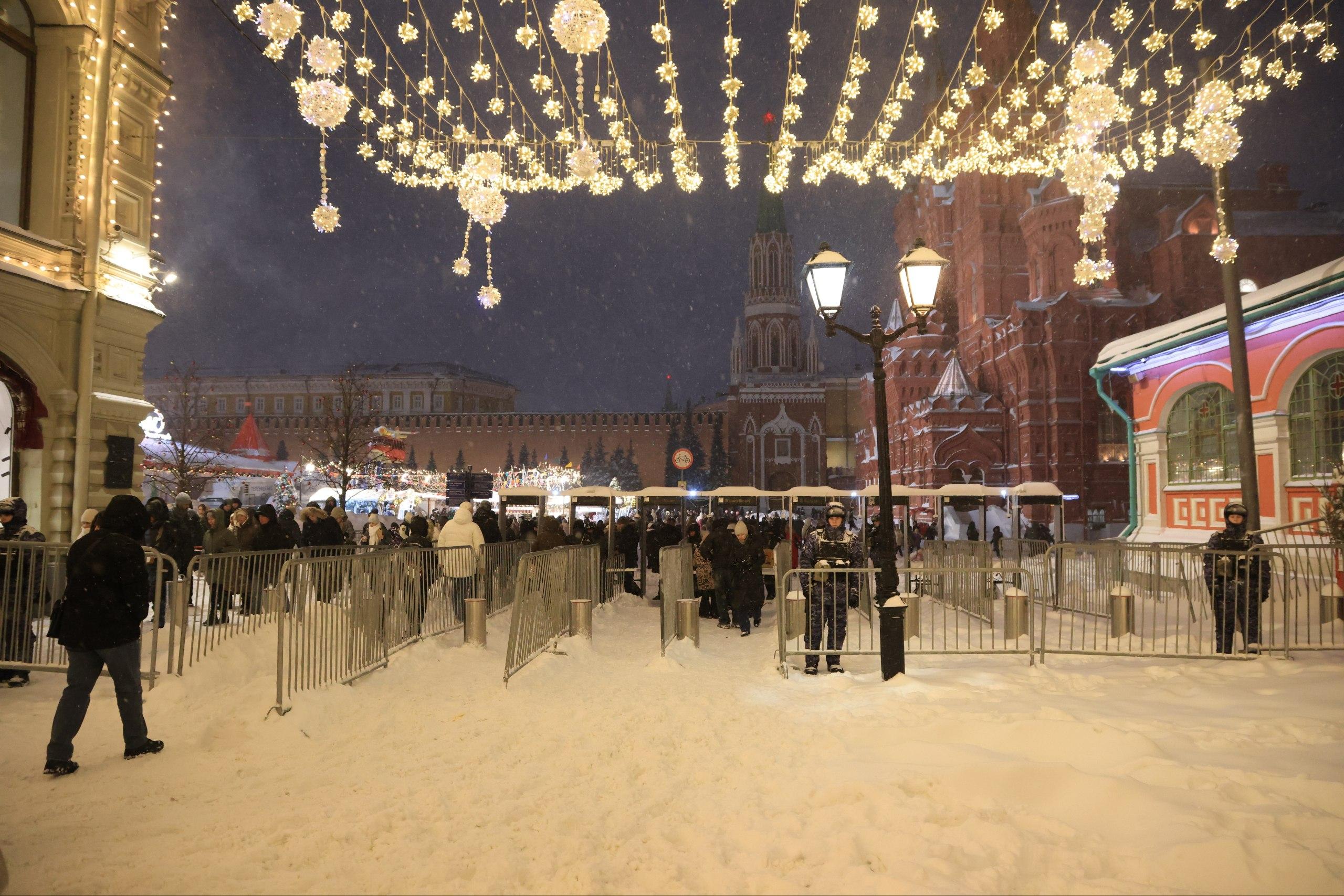 Новогодняя атмосфера и очереди возле Красной площади.