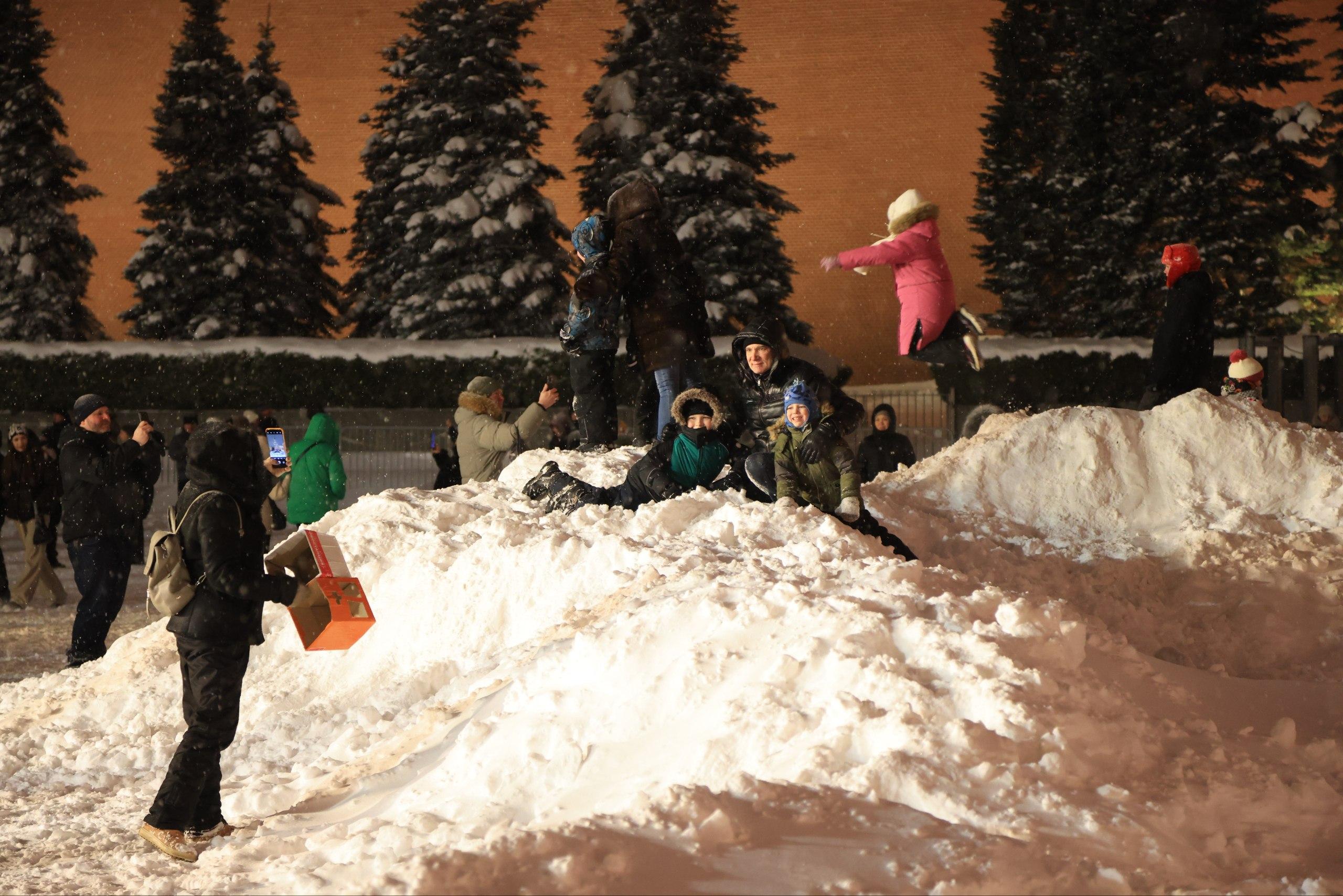 Огромные сугробы на главной площади Москвы.