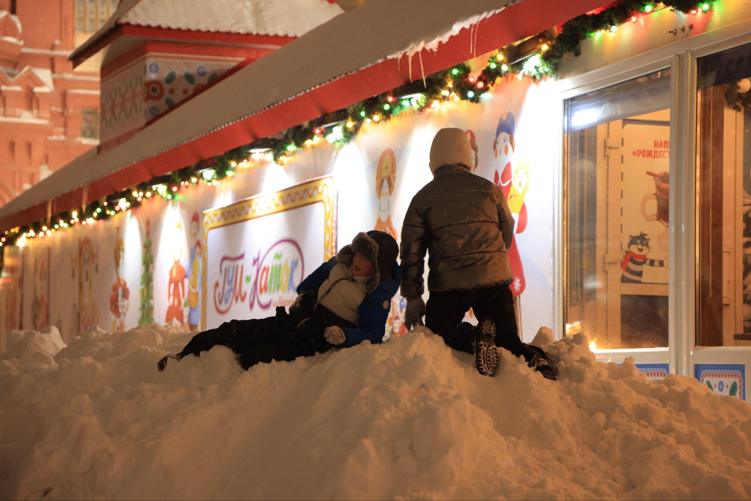 Снежные наносы возле здания ГУМа.