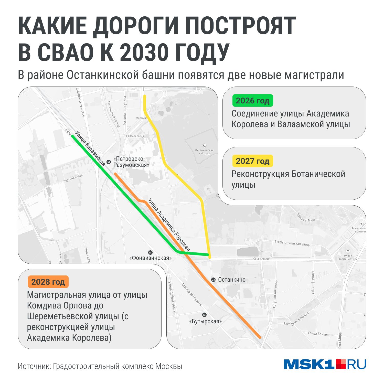 В 2026 году на северо-востоке столицы откроют новый мост, который свяжет МСД с улицей Академика Королёва, а также продлят Валаамскую улицу в сторону станции метро «Петровско-Разумовская».