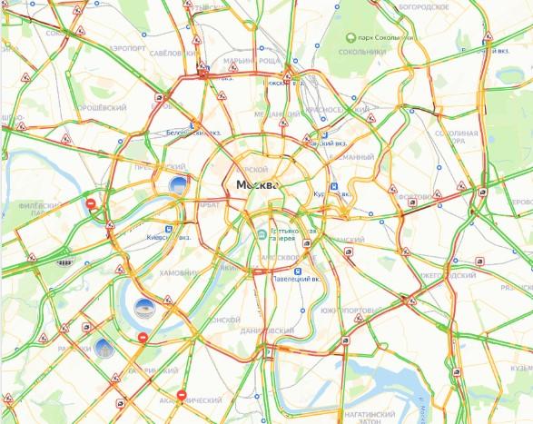 Наиболее сложная обстановка, по данным дептранса, сложилась в центре города, на МКАД, а также на внешней стороне Третьего транспортного кольца в районе улицы Сущёвский Вал. Тяжёлое движение отмечено на Ленинградском шоссе в сторону области и внешней стороне Садового кольца у Самотёчной эстакады.