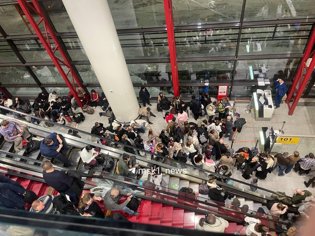 В аэропорту Шереметьево скопились толпы пассажиров, не способных вылететь.